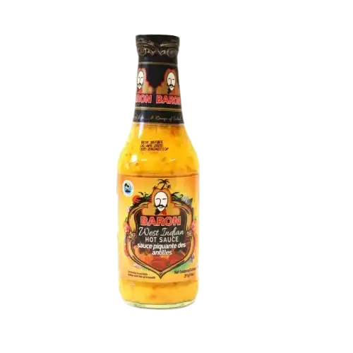 Ignite your dishes with Baron West India Hot Sauce, a fiery blend of Caribbean peppers and spices. Perfect for adding bold heat and tangy flavor, it elevates chicken, seafood, rice, soups, and sauces with authentic West Indian zest.