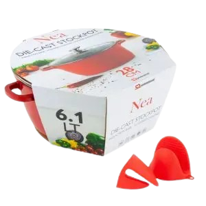 The SQ Professional Nea Non-Stick Aluminium Stock Pot Red/Rossa – 28cm (9380) is a spacious and durable cookware piece, perfect for preparing larger meals with ease. Crafted from high-quality aluminium with a superior non-stick coating, it delivers excellent heat distribution, effortless food release, and easy cleaning. Its generous 28cm capacity makes it ideal for cooking soups, stews, pasta, curries, and family-sized dishes. The vibrant red/rossa finish brings a bold splash of colour to your kitchen, combining modern style with everyday practicality.