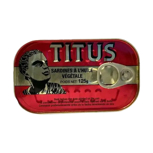 Enjoy the rich taste and premium quality of Titus Sardine à l’Huile Végétale 125g. Packed in vegetable oil, these carefully selected sardines are a natural source of protein, omega-3 fatty acids, and essential nutrients. Known for their distinct flavor and soft texture, Titus Sardines are perfect on their own or as part of your favorite recipes. Conveniently packed in a 125g tin, they’re ideal for quick meals, sandwiches, salads, or traditional dishes.